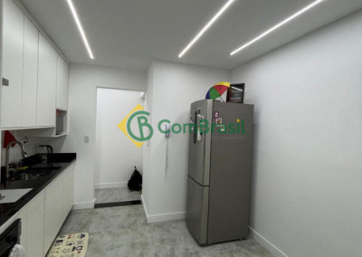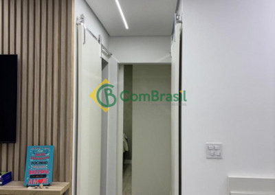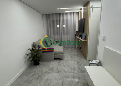 Detalhes do acabamento do imóvel: Apartamento com porcelanato na sala e cozinha, com vinilico nos quartos, móveis planejados (Cozinha-sala-banheiros e quartos), canto alemão, painel ripado, mármore preta na cozinha e lavanderia. mármore branca no banheiro, espelhos até o teto no banheiro e quarto e boxe de vidro até o teto.